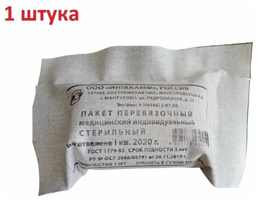 Комплект медицинский ИПП-1 предназначен для оказания первой медицинской само- и взаимопомощи при несчастных случаях, стихийных бедствиях, техногенных авариях и других экстремальных ситуациях, в том числе в военных условиях. Состав: пакета: Повязка-подушечка из нетканого полотна подвижная; Повязка-подушечка из нетканого полотна неподвижная; Размеры подушечки не более 17.5×32 см. Марлевый бинт; Размеры бинта не более 10 см x 7.0 м. Безопасная булавка; Двухслойная герметичная упаковка – внутренняя упаковка из пергамента и внешняя прорезиненная ткань. Перевязочный пакет изготавливается по ГОСТ 1179-93. Упакован в герметическую наружную оболочку из прорезиненной ткани. Срок годности: 5 лет. Данный товар поставляется в разных вариантах (без возможности выбора). Общие правила и рекомендации эксплуатации аптечек первой помощи: 1. Выделите общедоступное место для хранения аптечки, отметьте информационным знаком ? Аптечка 2. Регулярно напоминайте сотрудникам о наличии аптечки (1 раз в месяц или в 1 раз в квартал – в зависимости от специфики производства). 3. У секретаря, руководителя или в самой аптечке должна быть информация о сотрудниках с медицинским образованием и их контактные номера. 4. Регулярно проводите инвентаризацию аптечки на предмет наличия всех лекарств и их сроков годности. 5. Проверьте, чтобы лекарства в аптечке соответствовали типовым травмам рода деятельности предприятия. 6. Дополните аптечку лекарствами специфичных заболеваний (диабет, астма, аллергия и др 7. Наличие тонометра и термометра позволит быстрее определить какое лекарство необходимо дать сотруднику в ряде случаев. 8. Важно иметь контакты родственников или друзей, с кем можно связаться в случае критической ситуации. 9. Составьте подробную инструкцию с перечнем симптомов и лекарств. Разместите информационные плакаты. Это позволит не терять ценное время при оказании первой помощи.